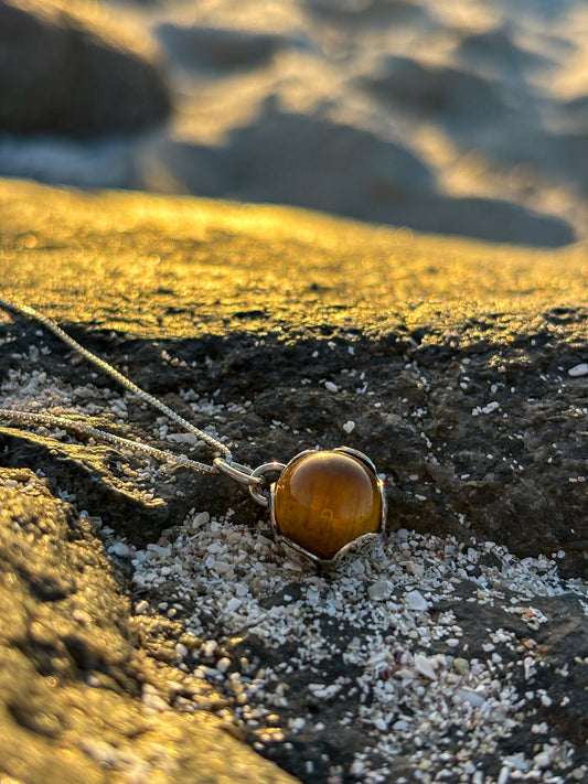 Collar esfera Piedra Ojo de Tigre fases lunares