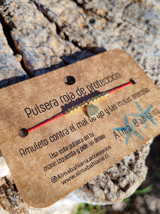 Pulsera roja corazón bañado en oroPrecio habitual $9.990 CLPPrecio habitualPrecio unitario / por-