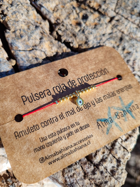 Pulsera roja ojo turco verde bañado en oroPrecio habitual $9.990 CLPPrecio habitualPrecio unitario / por-