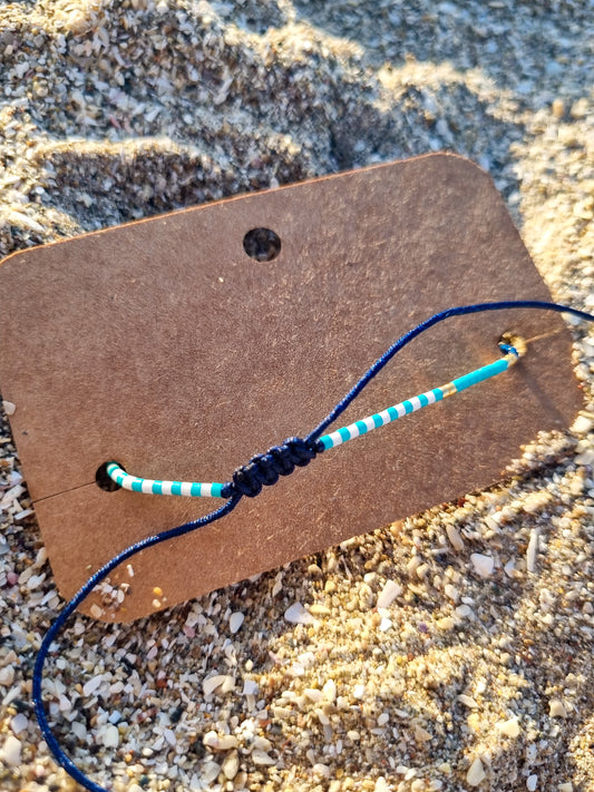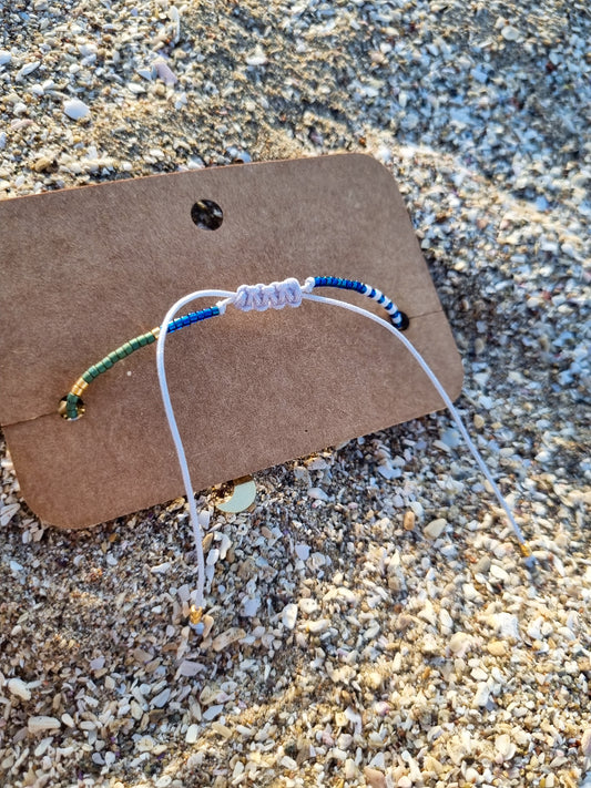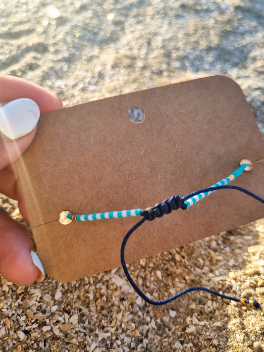 Pulsera miyuki tonos azul, turquesa y blanco colita ballenaPrecio habitual $11.990 CLPPrecio habitualPrecio unitario / por-