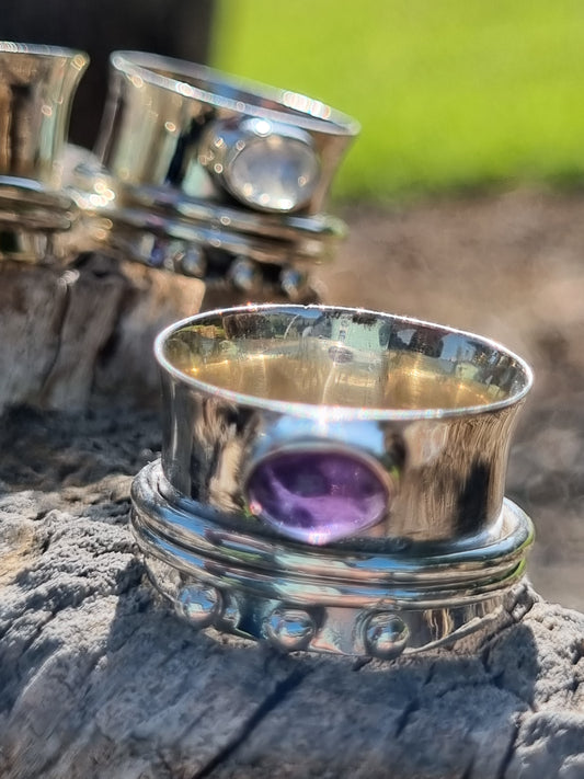 Anillo giratorio con Amatista grande doble bandaPrecio habitual $28.990 CLPPrecio habitualPrecio unitario / por$35.990 CLPPrecio de oferta $28.990 CLPOferta