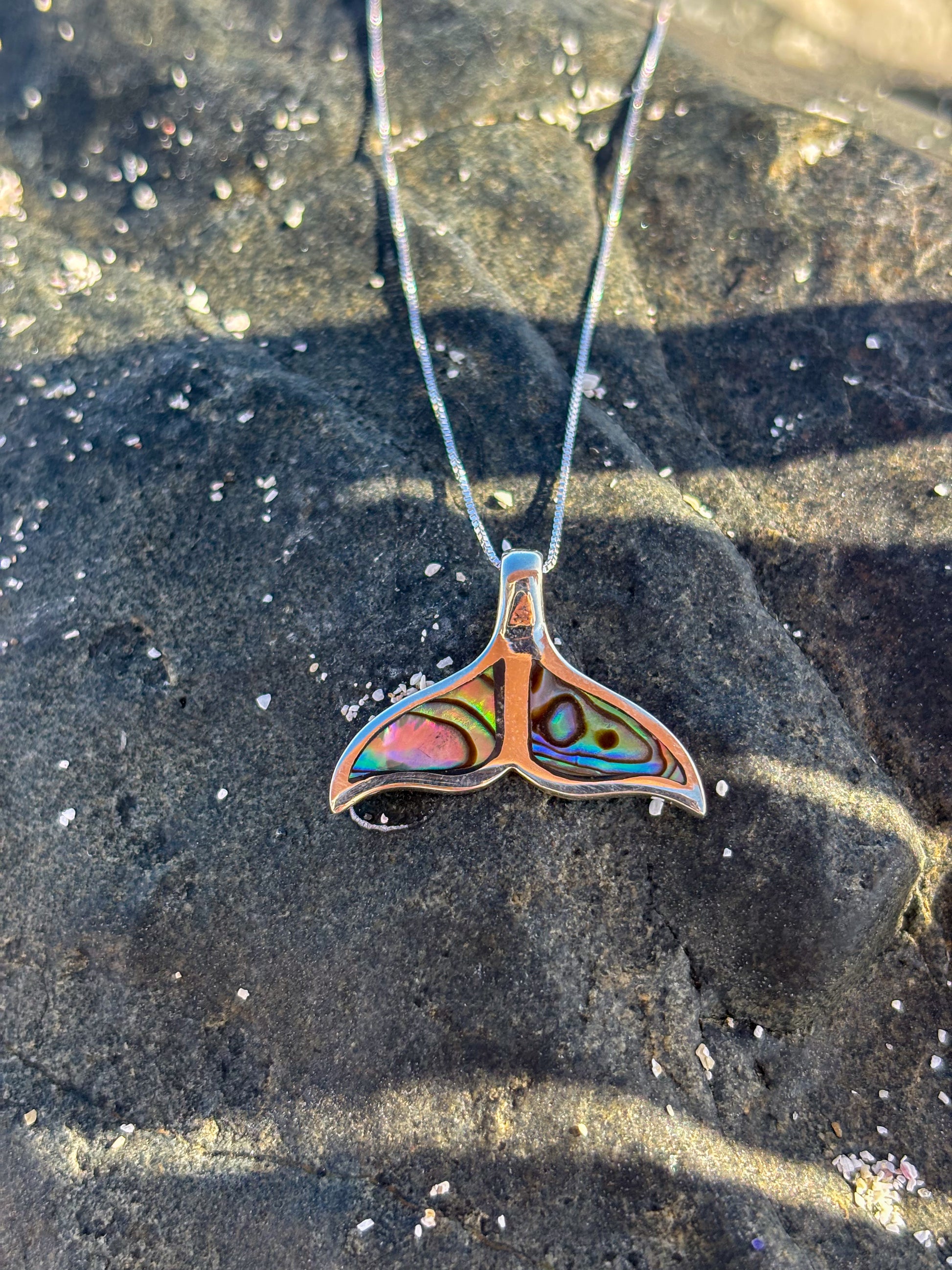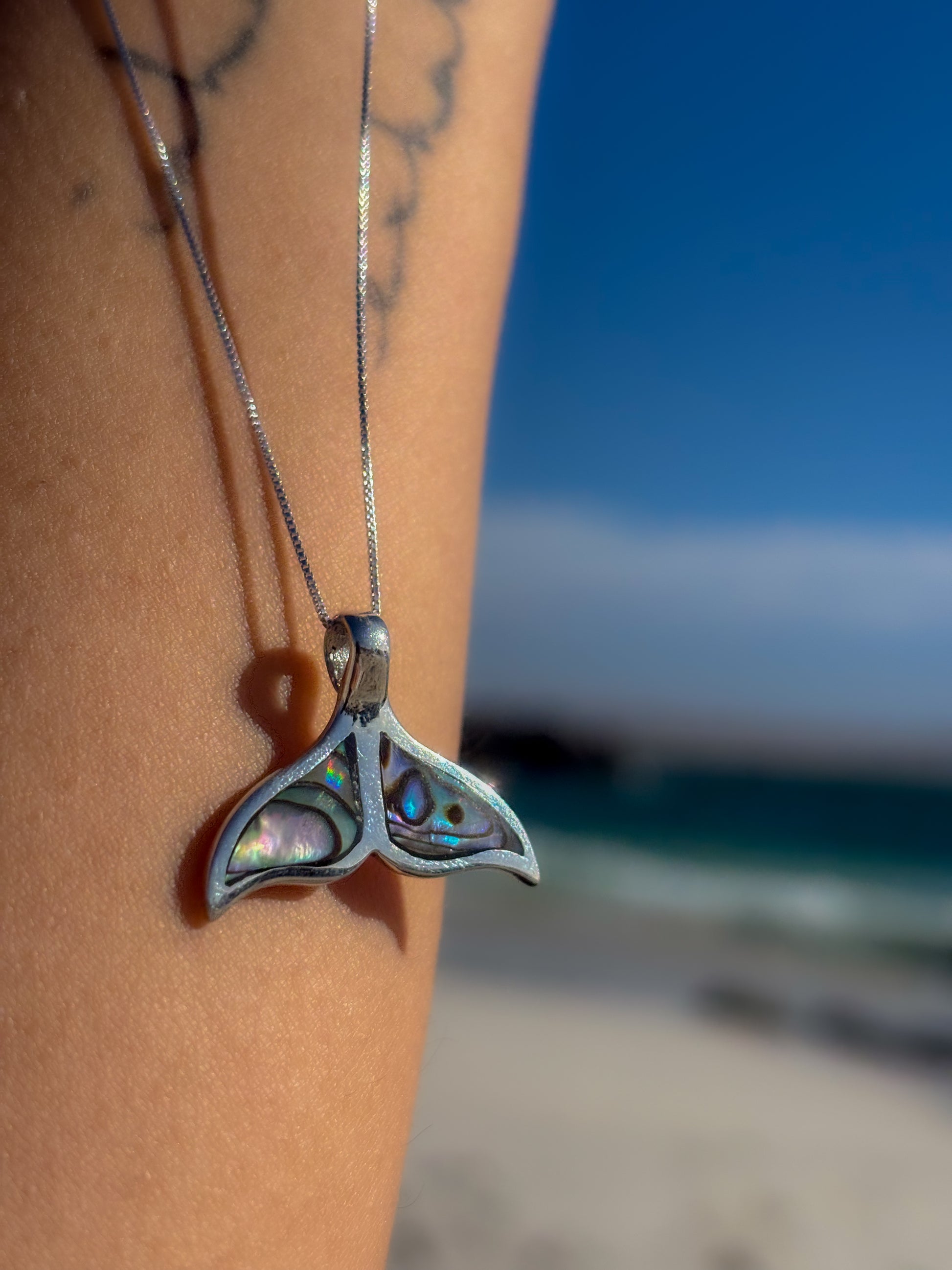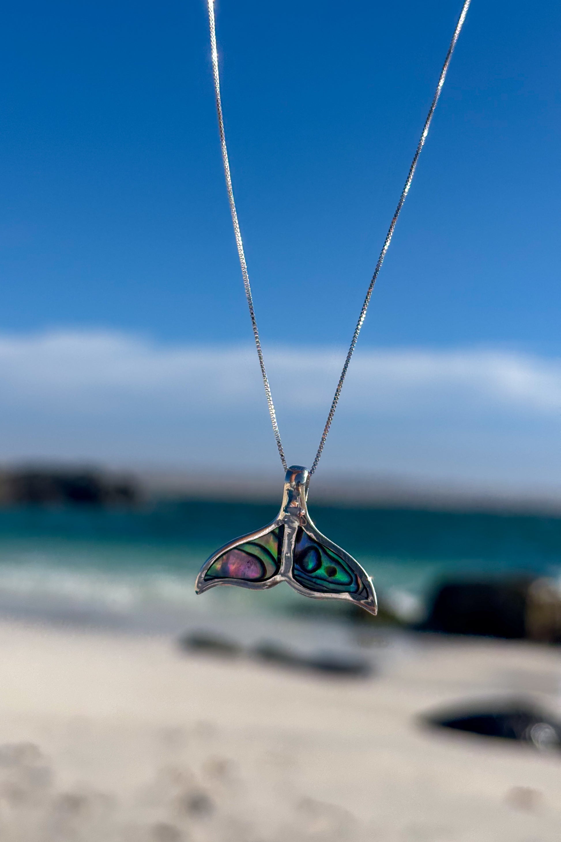 Este collar cola de ballena hecho de plata 925 y adornado con Abalón debe ser tuyo! Dale un toque único a tu look con esta pieza de joyería inspirada en el mar. ¡Perfecto para los amantes del mar!