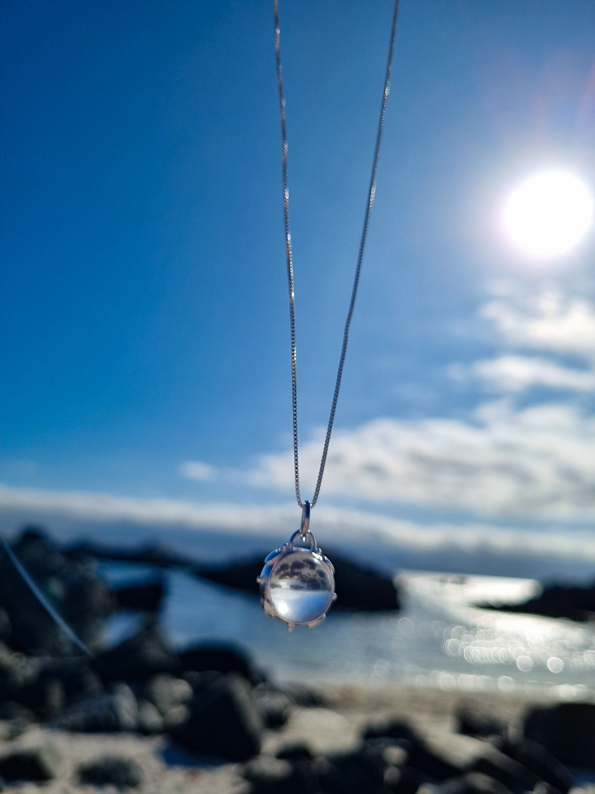 Este collar hecho en plata 925 cuenta con una esfera de cuarzo cristal transparente. El cuarzo cristal es conocido por su capacidad para atraer y amplificar energías positivas, limpiar el aura y alejar las energias negativas de tu vida, lo que hace de este collar no solo sea hermoso, sino también una herramienta para mejorar tu bienestar y equilibrio.