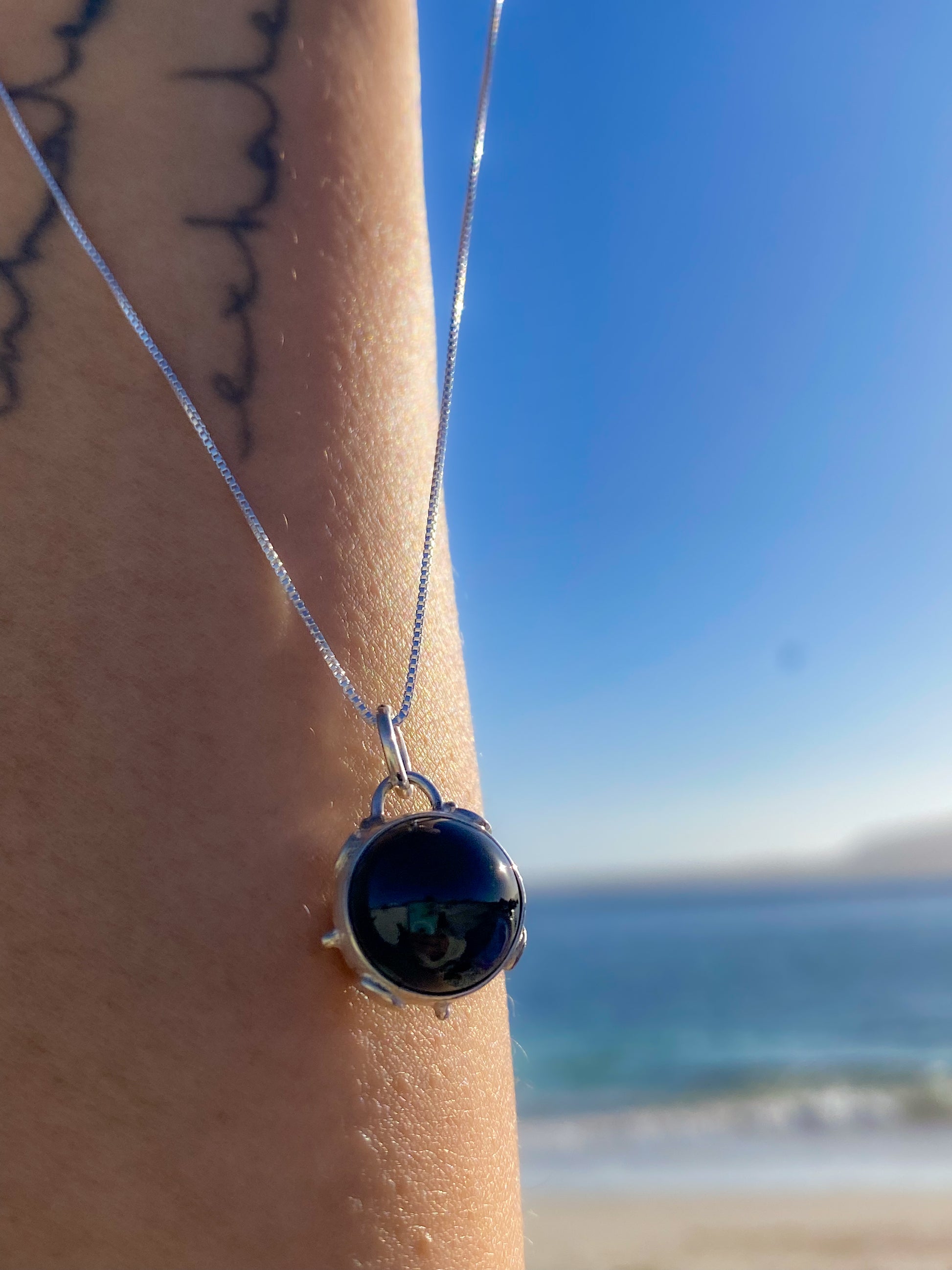 Este collar de plata 925 presenta una hermosa esfera de piedra ónix negro, lo que lo convierte en una pieza elegante y versátil que complementará cualquier atuendo. Además de su diseño impresionante, la piedra ónix negro también se asocia con la protección y la fuerza, lo que lo convierte en una excelente opción para usar en cualquier ocasión.