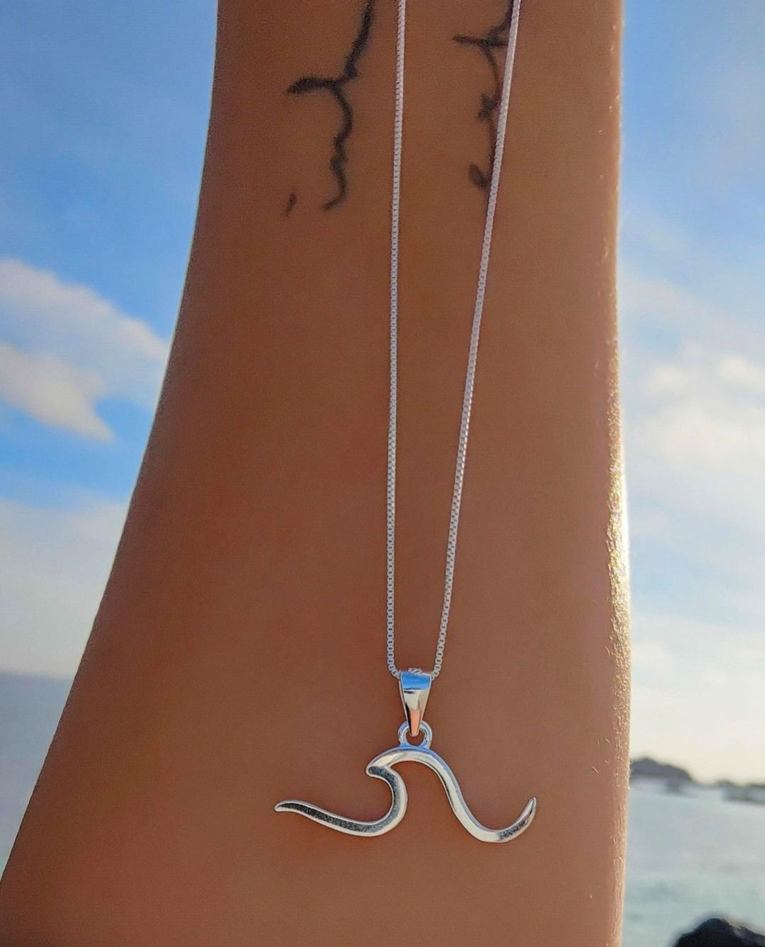 Collar de plata 925 con silueta de ola. Lleva el mar contigo a todas partes!