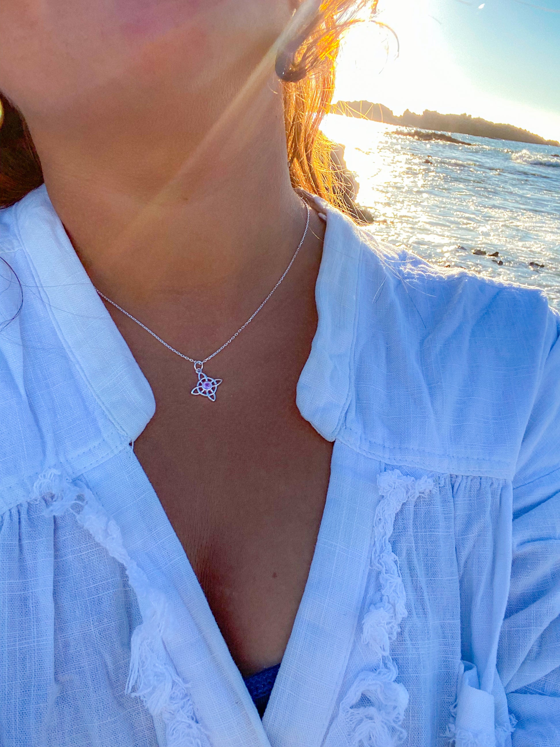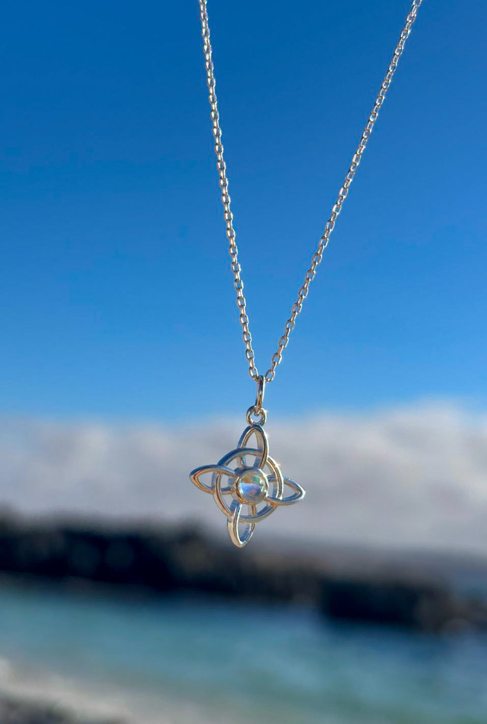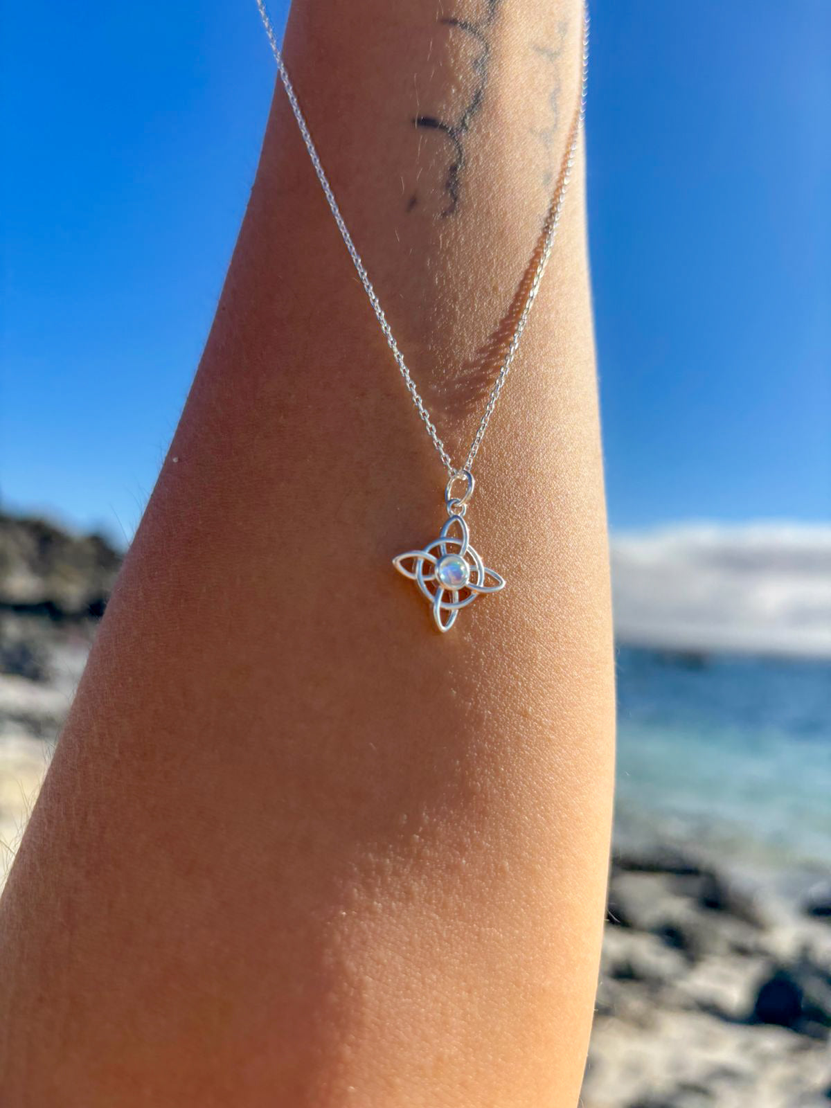Collar en forma de nudo de brujas, hecho en plata 925 con piedra luna en el centro